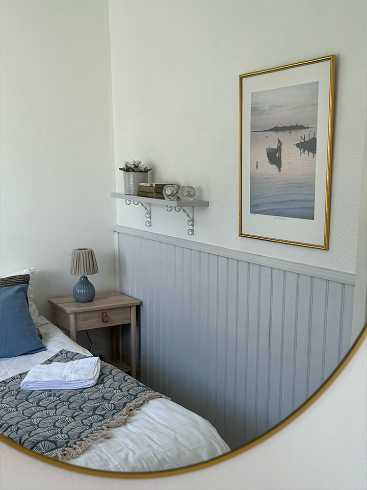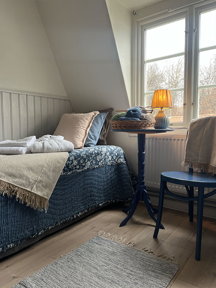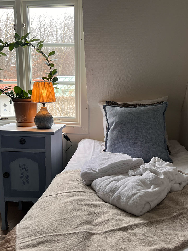 Rummet Tylön är charmigt minidubbelrum, perfekt för dig som inte behöver så mycket utrymme men värdesätter en god natts sömn. Här finns plats för två i en 140 cm bred säng. Rummet är inrett för att ge en hemtrevlig och mysig känsla trots sin kompakta storlek. Tylön ligger i vårt annex vilket ger en lite avskild och rofylld känsla. Idealiskt för dig som söker ett mindre, prisvärt alternativ utan att tumma på bekvämligheten.